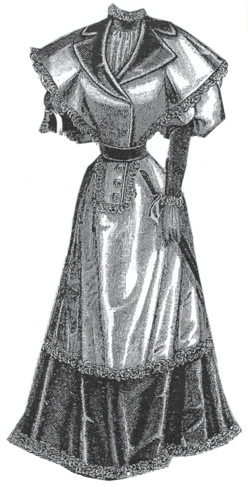 TOBACCO-BROWN CLOTH, TRIMMED WITH BLACK MOHAIR BRAID. IT HAS A