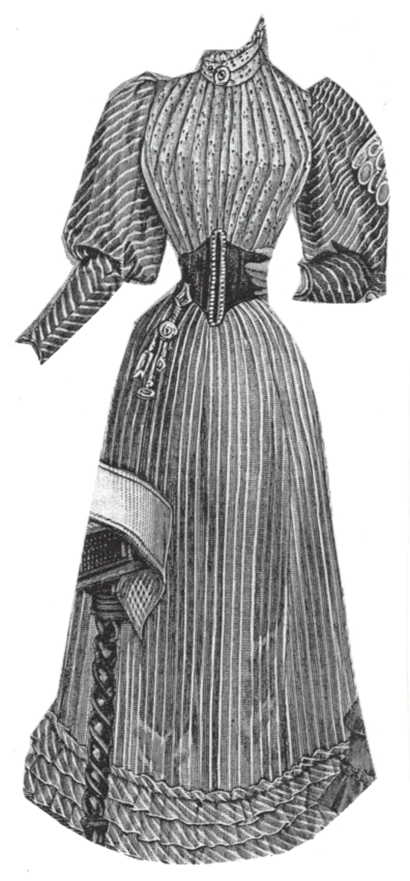 THE DIRECTORIE BODICE, WHICH OPENS ON A SHIRRED VEST OF LIGHT BLUE SILK.