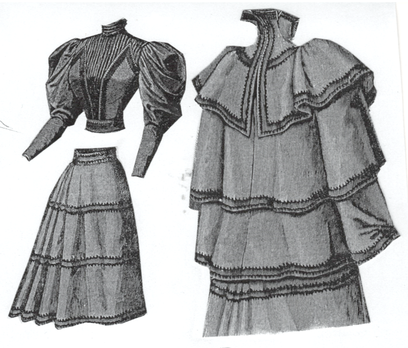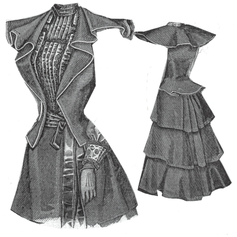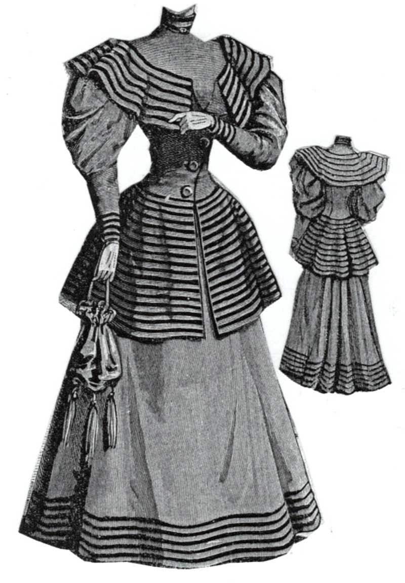 three rows each. Pattern consists of plastron, vest, jacket and skirt.
