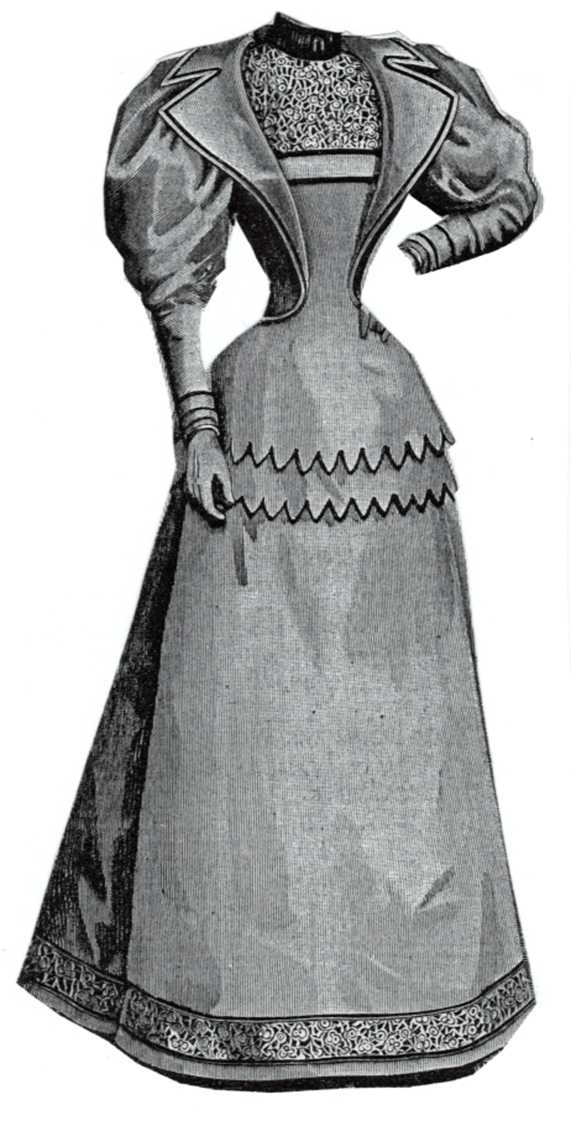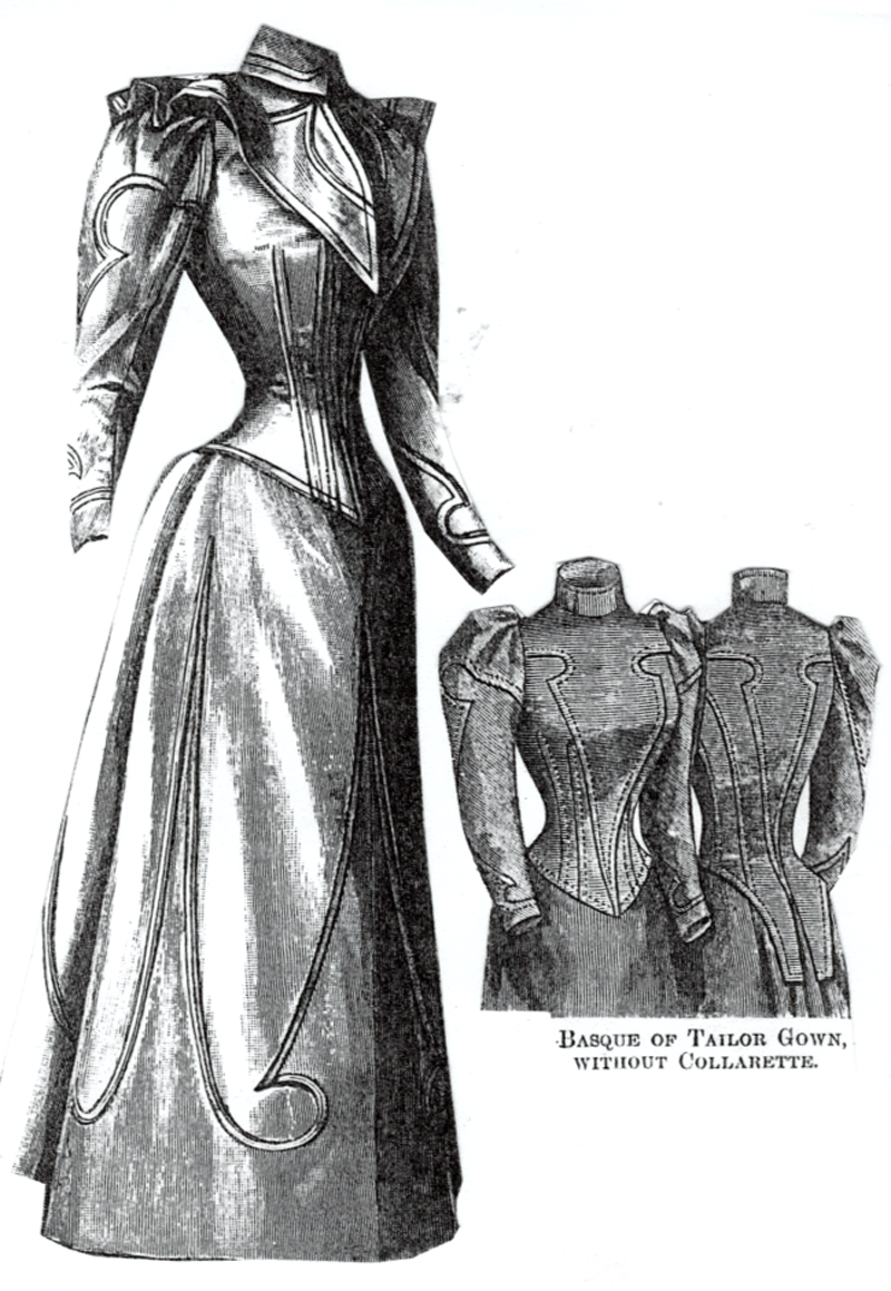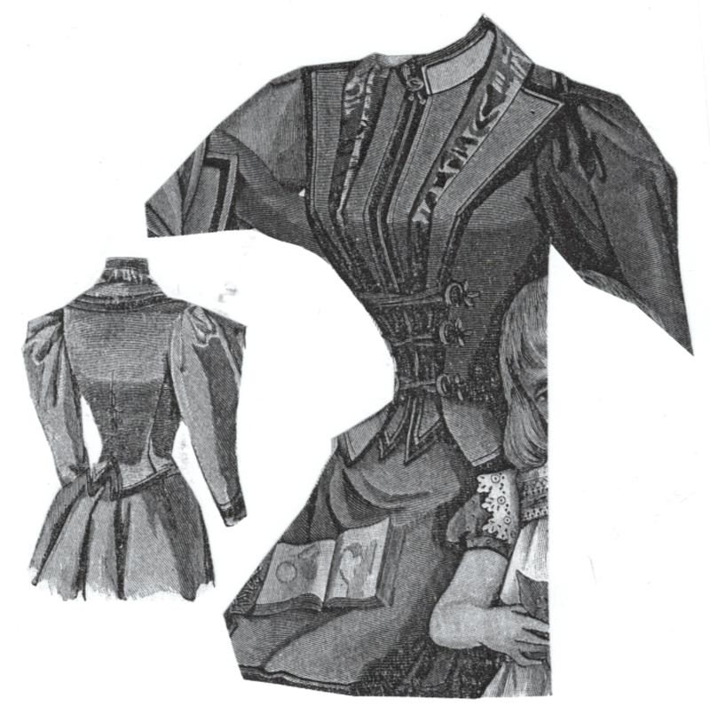 A BODICE WITH ALONG ADDED CIRCULAR BASQUE.