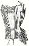 narrow pleated lace edged frill, headed by a shell frill of narrow lace.