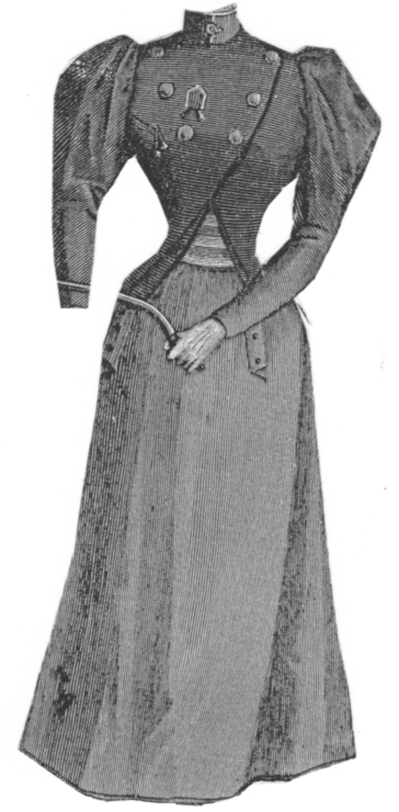 fastened with elastic loops and buttons instead of corset clasps and the