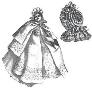 cloak is made either of white cashmere or of fine Bedford cord. It is