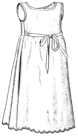 embroidered Nainsook has a low neck and short sleeves, to be worn with