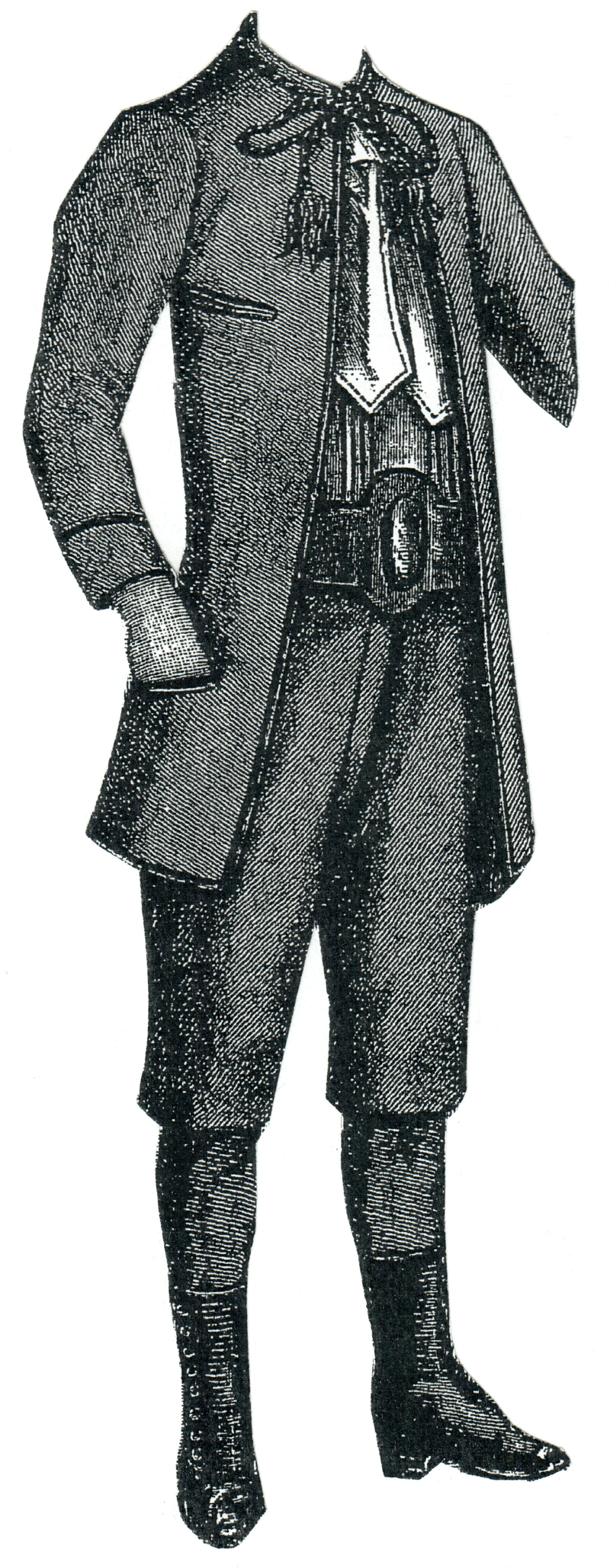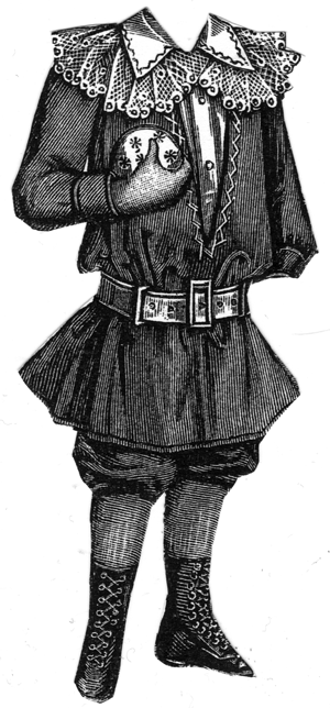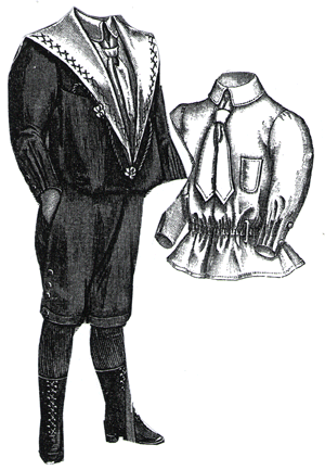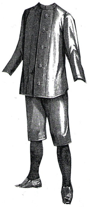 of knee trousers and an open jacket, which may have either a vest of the sam,