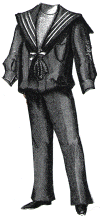 made of navy blue serge. It consists of knee trousers and a baggy