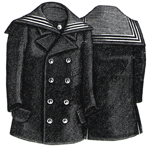 suitable for small boys and girls alike, is made of dark blue cheviot or