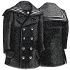 navy blue cheviot. It is finished with a notched revers collar, and is