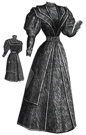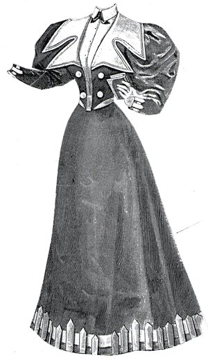 illustrated is of dark blue serge, with a little black soutache braiding.