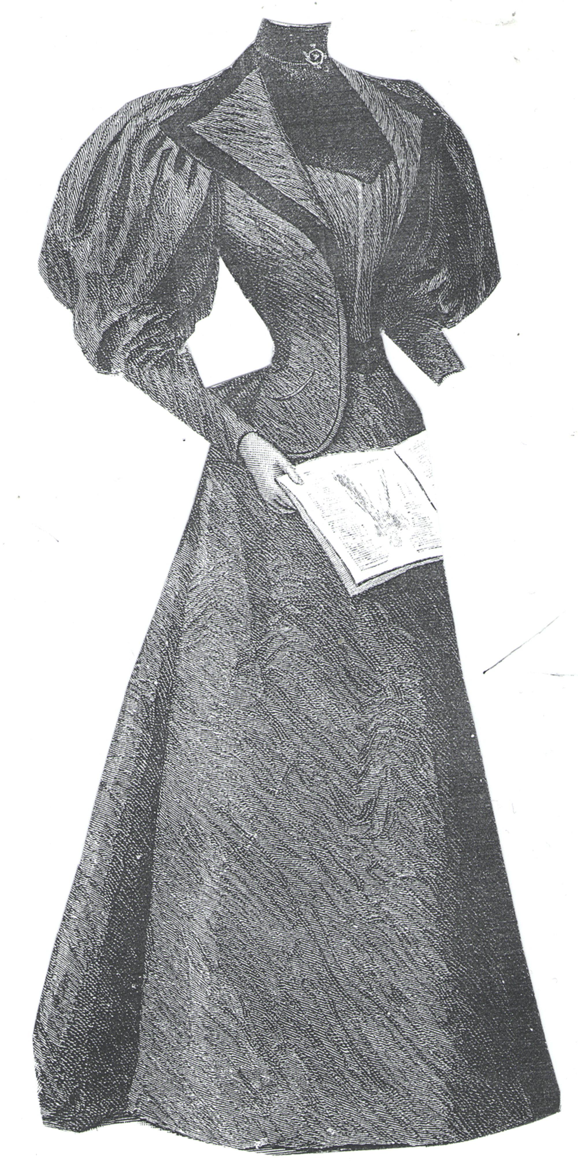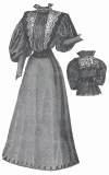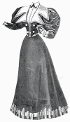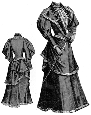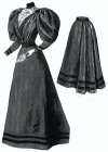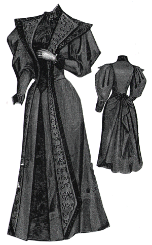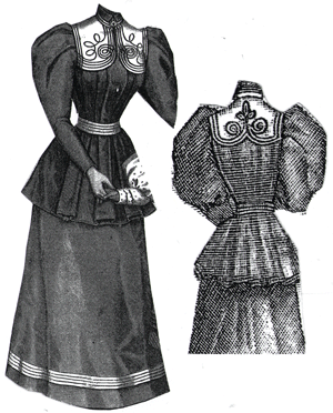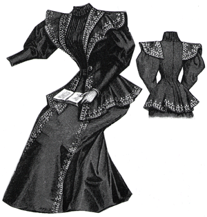 composed of a plain skirt and a long coat waist trimmed with black braid.