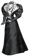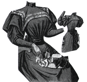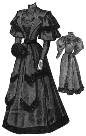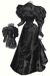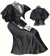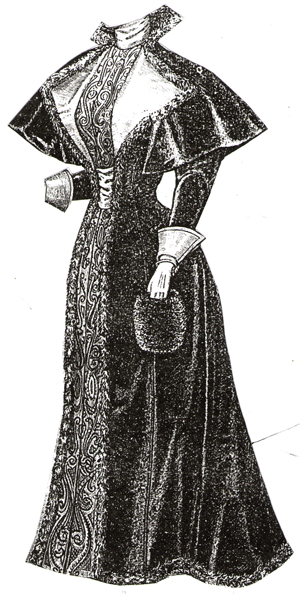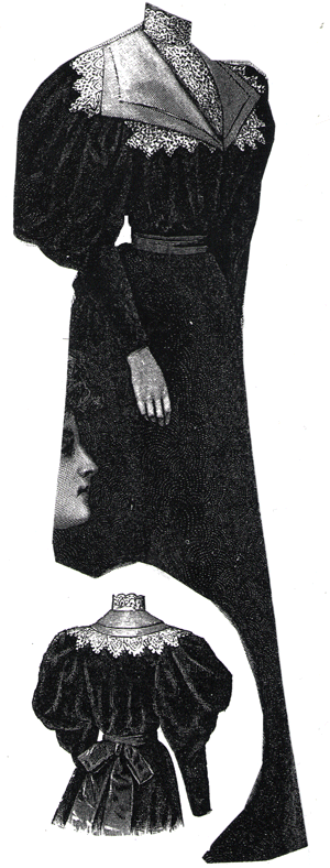 gown illustrated, trimmed with black morié velvet, and a large collar of