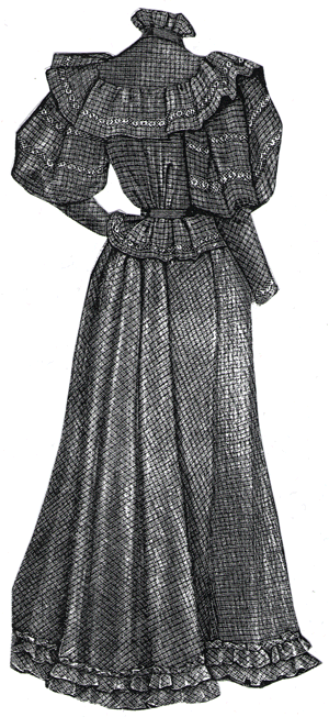 The gown illustrated is of gray cloth,