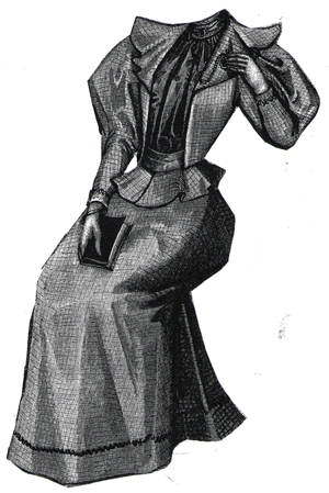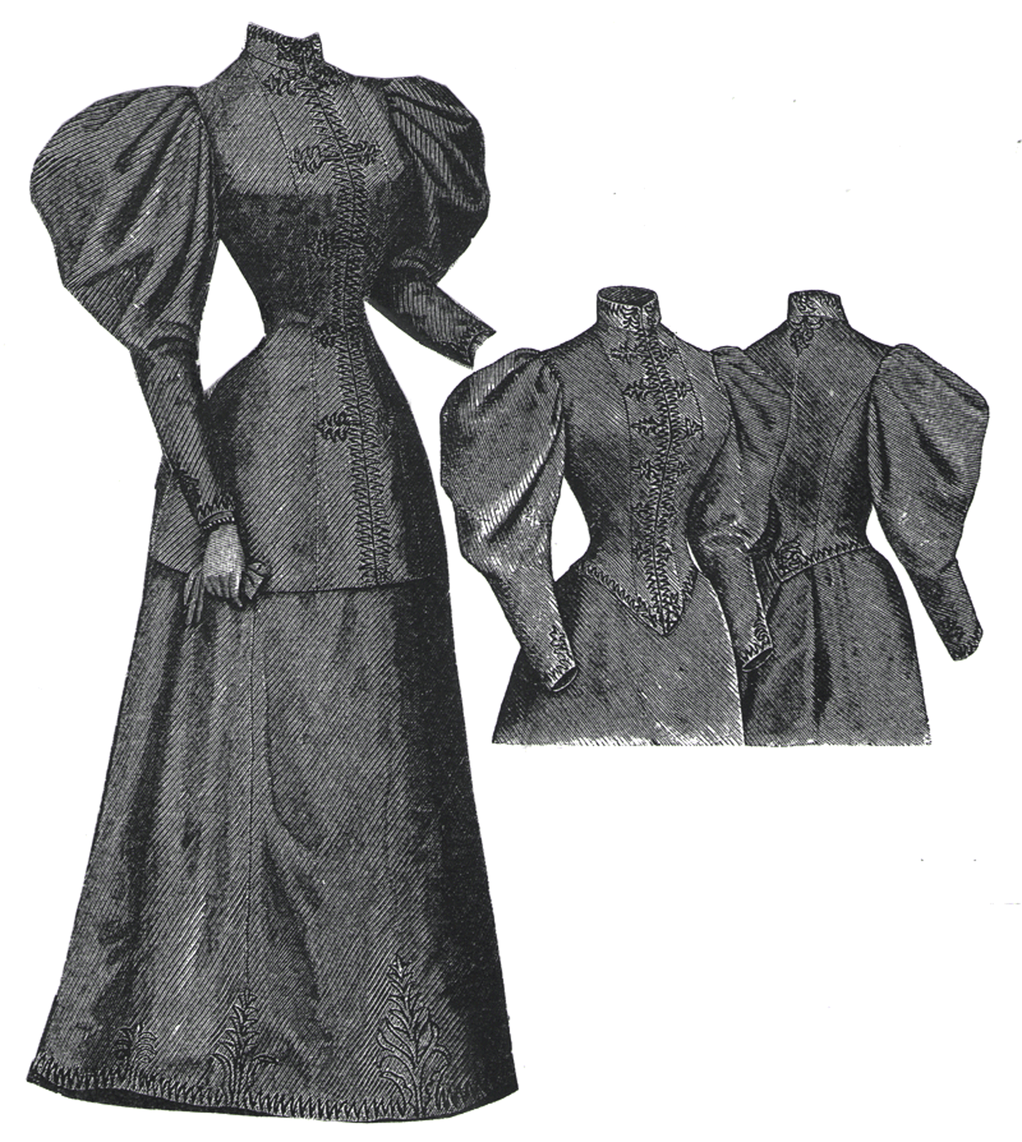 tailor gown illustrated, relieved by some simple braiding in black soutache.