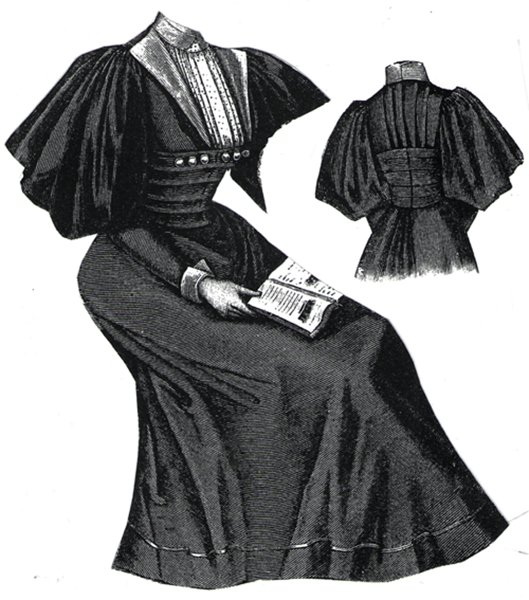 back, and a skirt of seven breadths with four godet folds in the back.