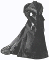 for a middle-aged lady is of tan-colored wool, with a chestnut-brown moiré.