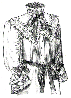 full vest and stock collar of cream chiffon, and was trimmed with cream lace