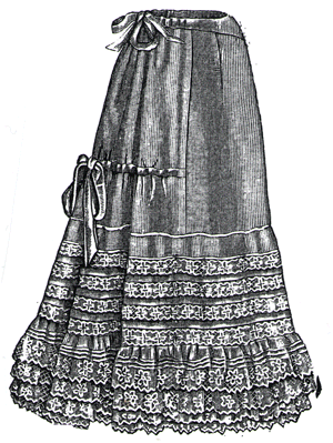 The second petticoat, is of black silk, with a full trimming at the bottom.
