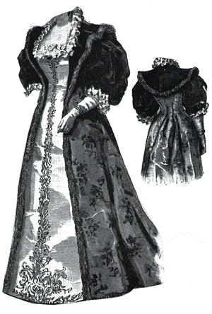 dress is of violet brocade, with sleeves and collarette of velvet and an