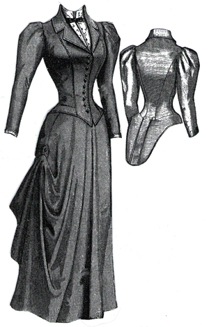 by darts; the basque is short at the front, with a rounded coat-tail back;