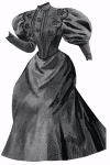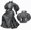 skirt of plain black Peau de Soie and a basque of chine figured taffeta in
