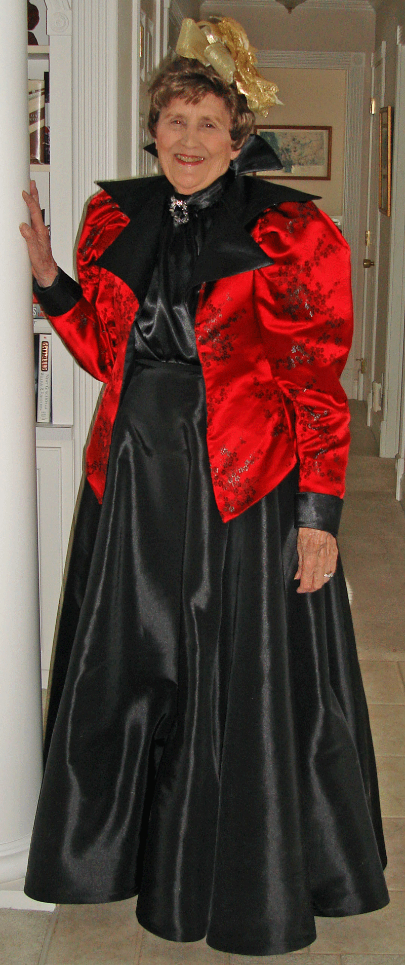 a scroll design with black fancy soutache. A narrow edging of black