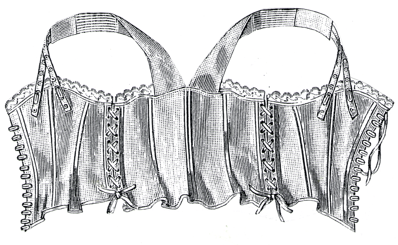 has two rows of hooks, across which it is lace and is made of gray coutil
