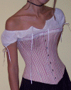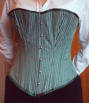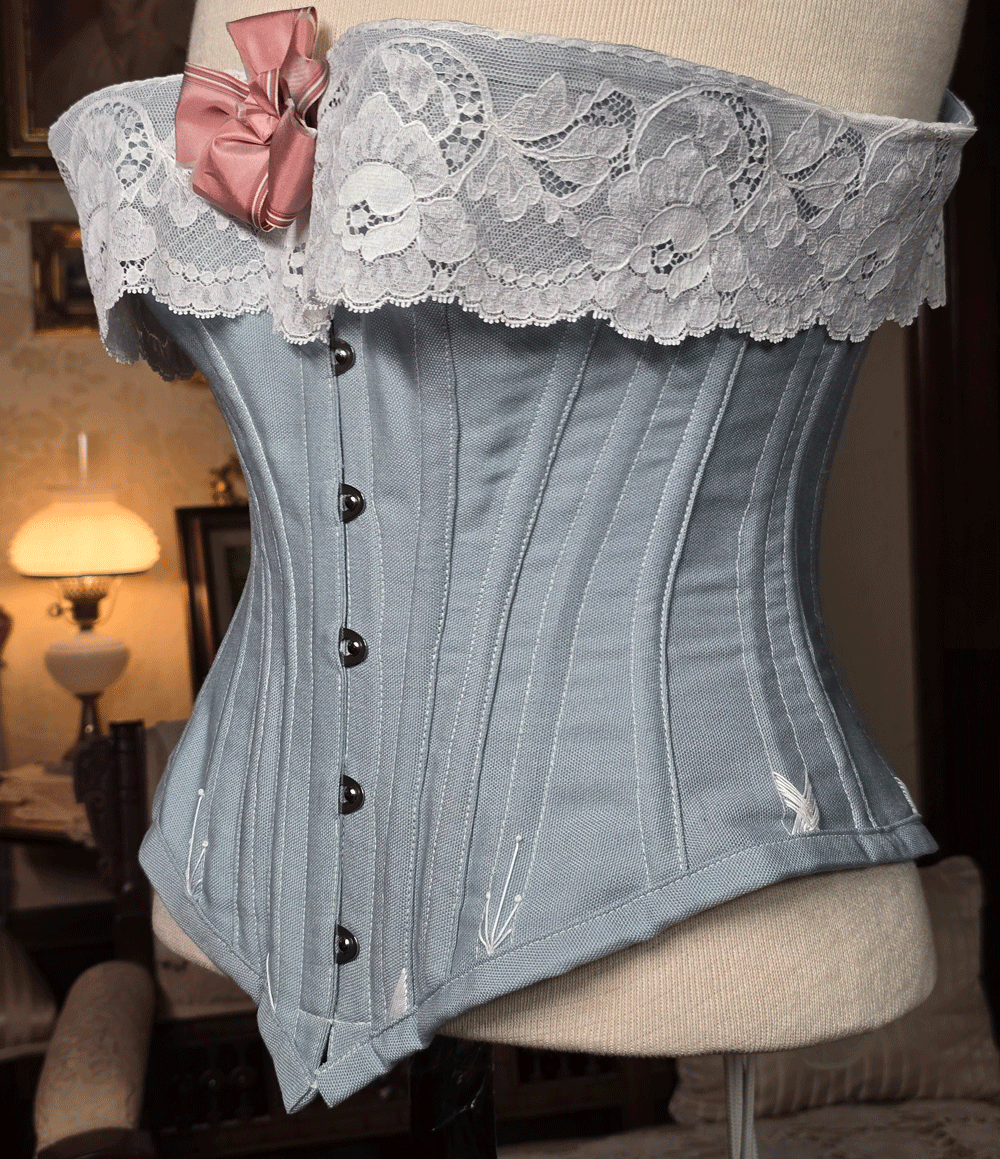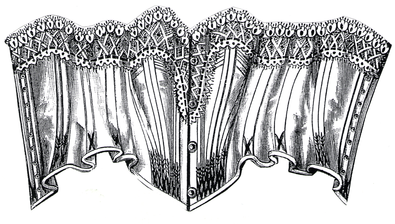 cambric, with white silk stitching to hold the whalebones and steels, and