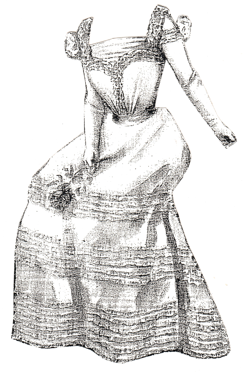flounces are appliquéd in black lace and consists of skirt, bodice and