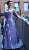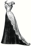 gown edged with bands of fur consists of bodice, skirt and overskirt.