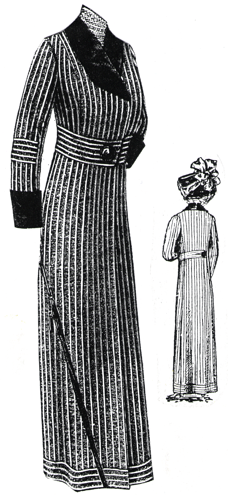 with white stripes. The collar and sleeve cuffs are in plain velvet of