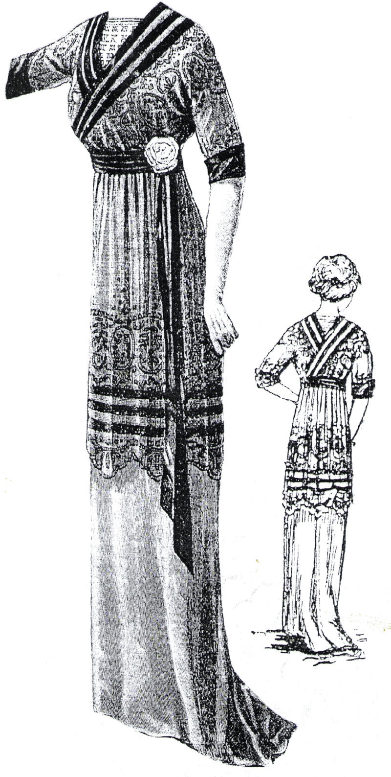 Liberty silk, topped by a tunic in black embroidered tulle. English