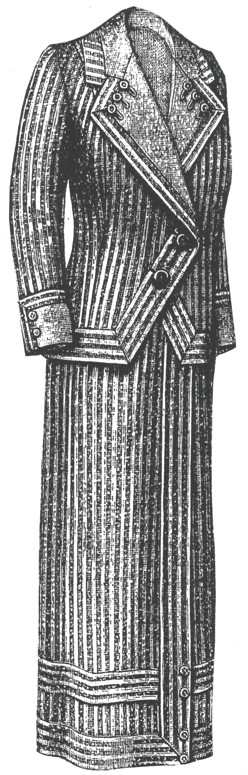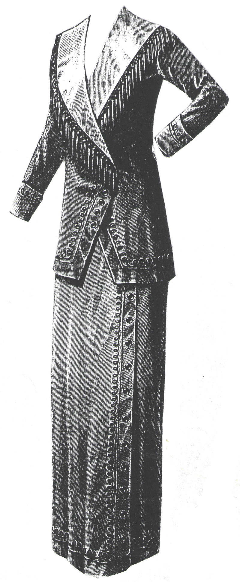 decorated with buttons. It is edged with soutache braid. The mid