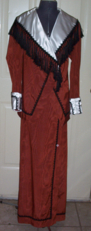 taffeta. The 3 gored skirt is crossed in front with a lap and