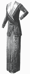 black Pékiné wool with satin lapels and cuffs and adorned with buttons.