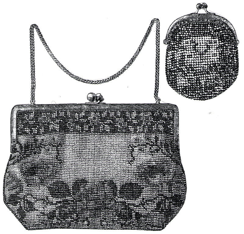 The two purses are embroidered in pearls