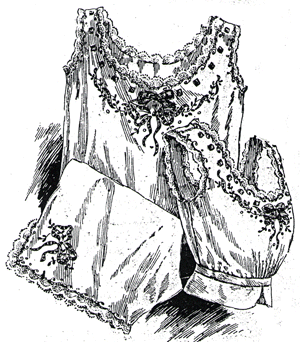chemise, pantaloons, corset cover and embroidery design.