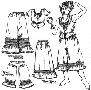 pantaloons, ankle length closed pantaloons, petticoat, chemise with sleeves