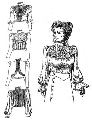 optional shaped hem and bustle or split back, and leg0'mutton sleeves