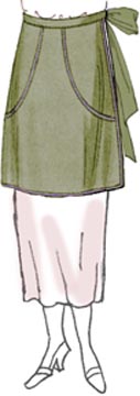 fullness gathered into shoulder yoke. Optional bias tie sewn to
