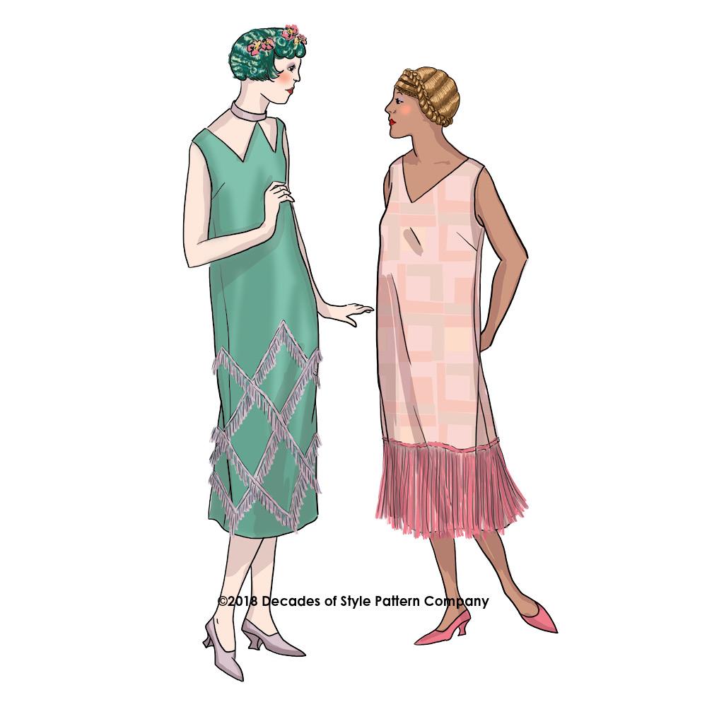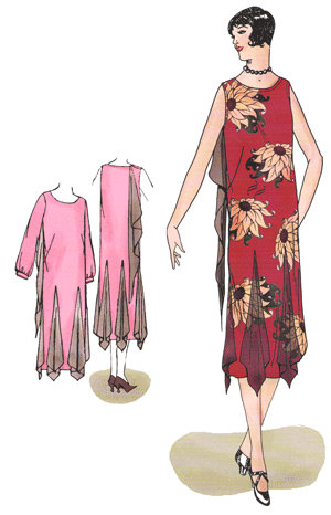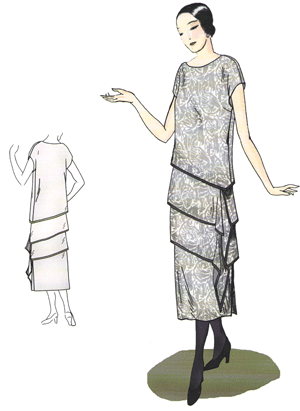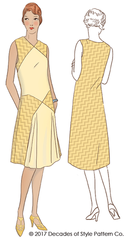 over 1920s day dress with eyelash welt pockets centered in diamond