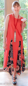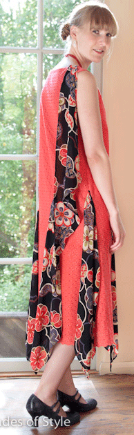 Contrast bias binding finishes the edges of the over-blouse and tiers. |