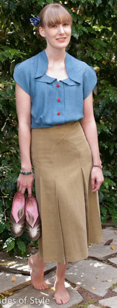 button at side waist. Use firmly woven, medium weight fabrics: linen,