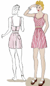 cut on the bias Brassiere top is fully lined and buttons in back. Shorts