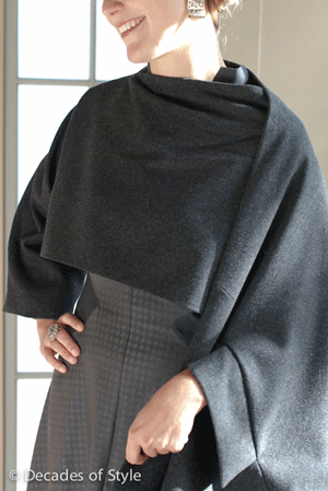 stole with a sleeve on the right side. The back of the stole wraps over the