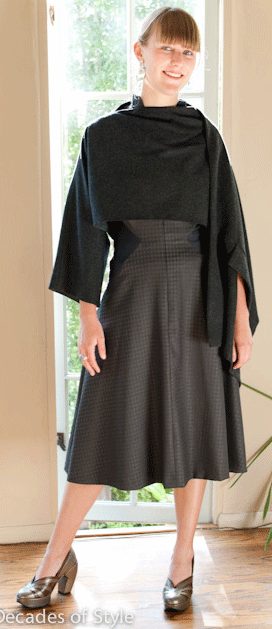 at the waist and 3 1/2" ease at the hip. Skirt has pleated inset