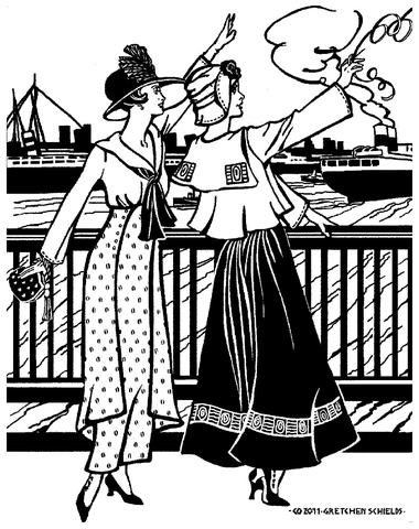 Multi-Size - S to 3XL This Blouse reflects the military styling of World War I uniforms, as well as the new interest in comfortable and practical two-piece garments. The easy-sew blouse features a breezy, loose fit; slightly belled sleeves; flared hemline with gentle downward curve at center back; V-neck and sailor collar. t makes a perfect summer blouse tucked into a skirt, such as #209 Walking Skirt. It also is versatile worn out, as a lightweight jacket over a feminine camisole. Drape an oblong scarf around the neck for simple style, or dress it up with Art Nouveau or your favorite embroidery motifs around the sailor collar. Complete the period look with #269 Metropolitan Hat. Suggested Fabrics: For a blouse, choose handkerchief linen (prewash to soften), lightweight cotton, or lightweight silk. For a jacket, choose medium-weight cotton, silk, or linen; lightweight or tropical-weight wool. |
