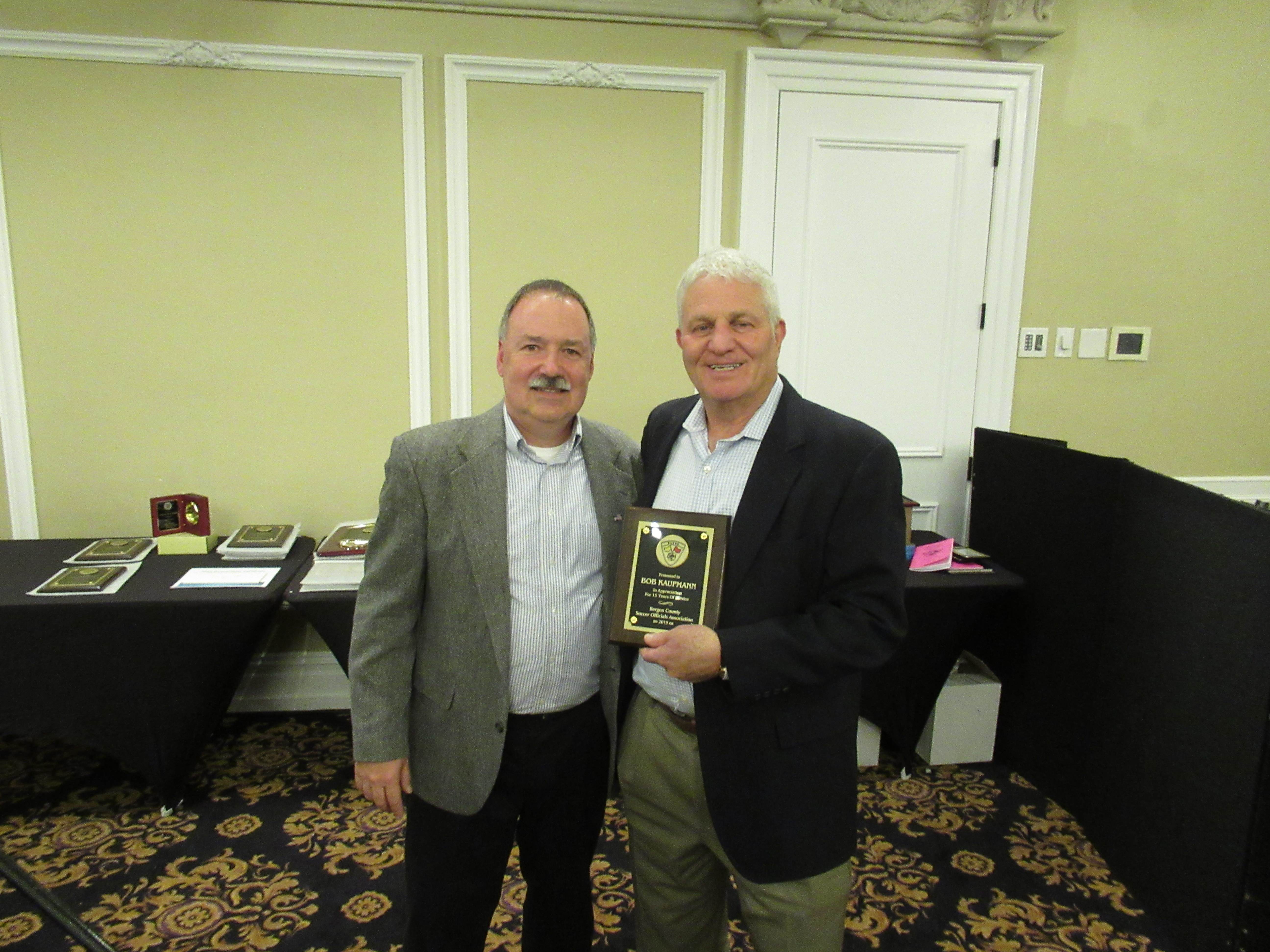 Bob Kaufmann (right) receiving his 15 year