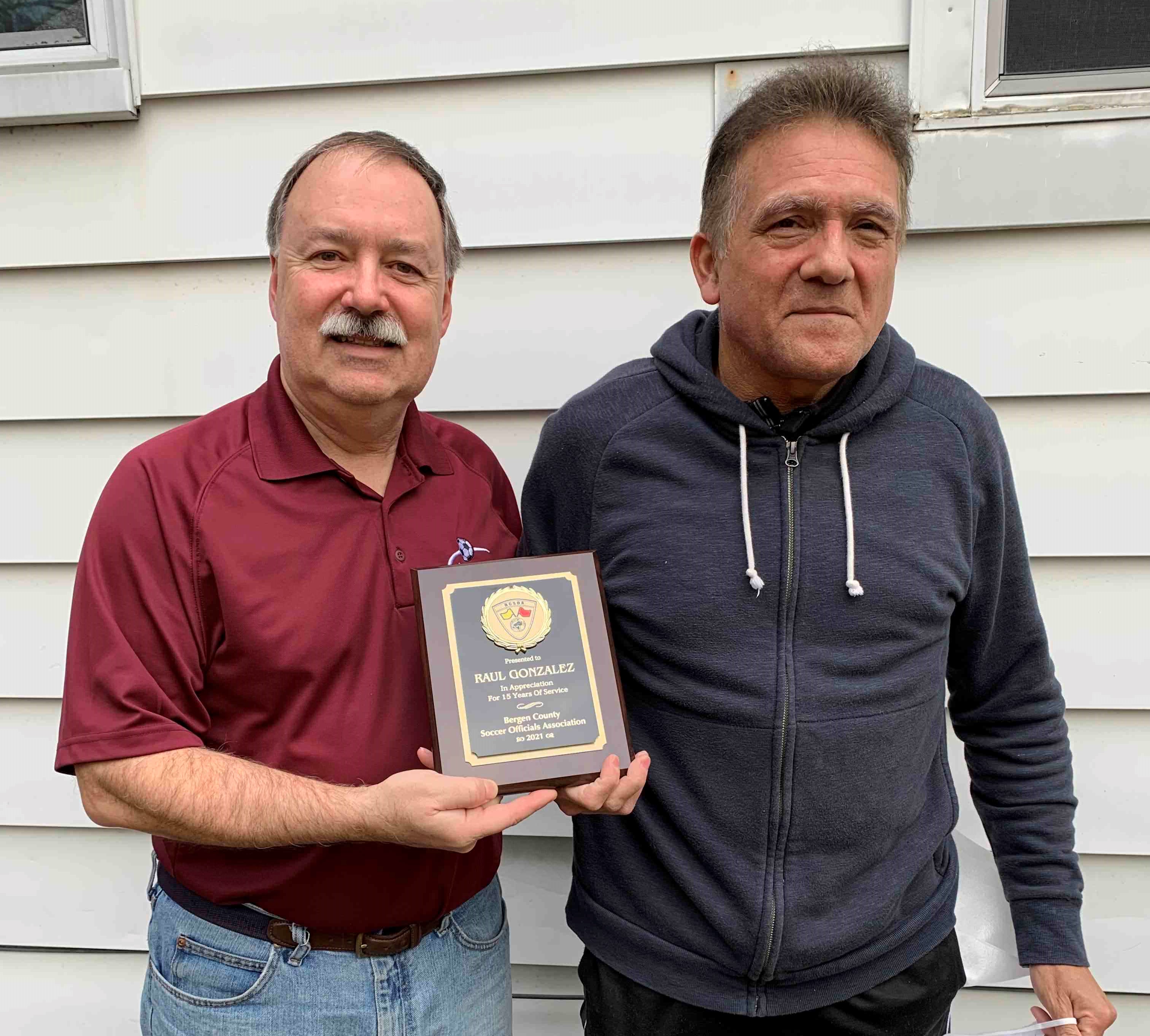 NJSIAA State Interpeter Ed Seavers (right) receiving his