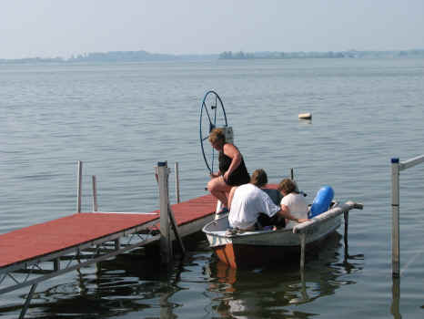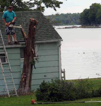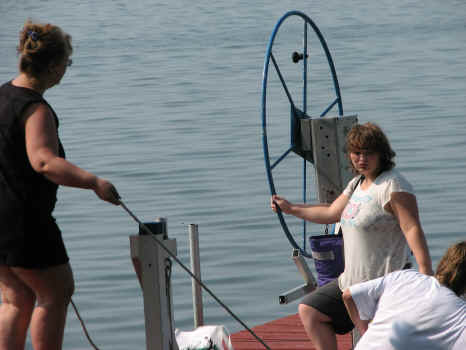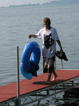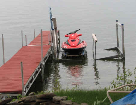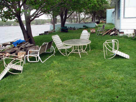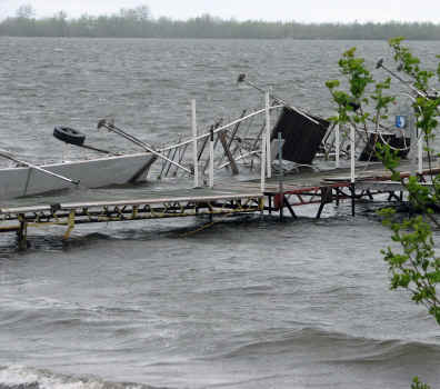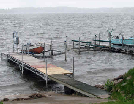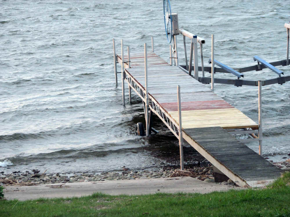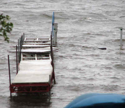 Note: Uncle Don said waves last night were above the last section out on my dock above. Also note that even though the storm has subsided and dropped at least 10" from that in this picture, the water level is still way above that of yesterday when over 1/2 the wheel was showing. See picture of wheel below.