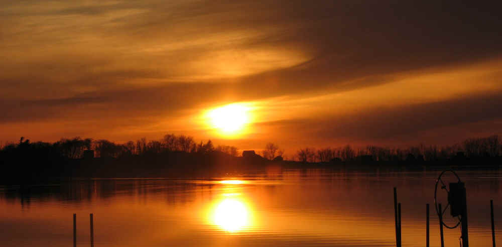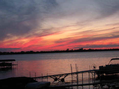 4/26/2010 Normally at this time of year the water should be at the bottom of the steel on the dock. Sunsets are not effected.